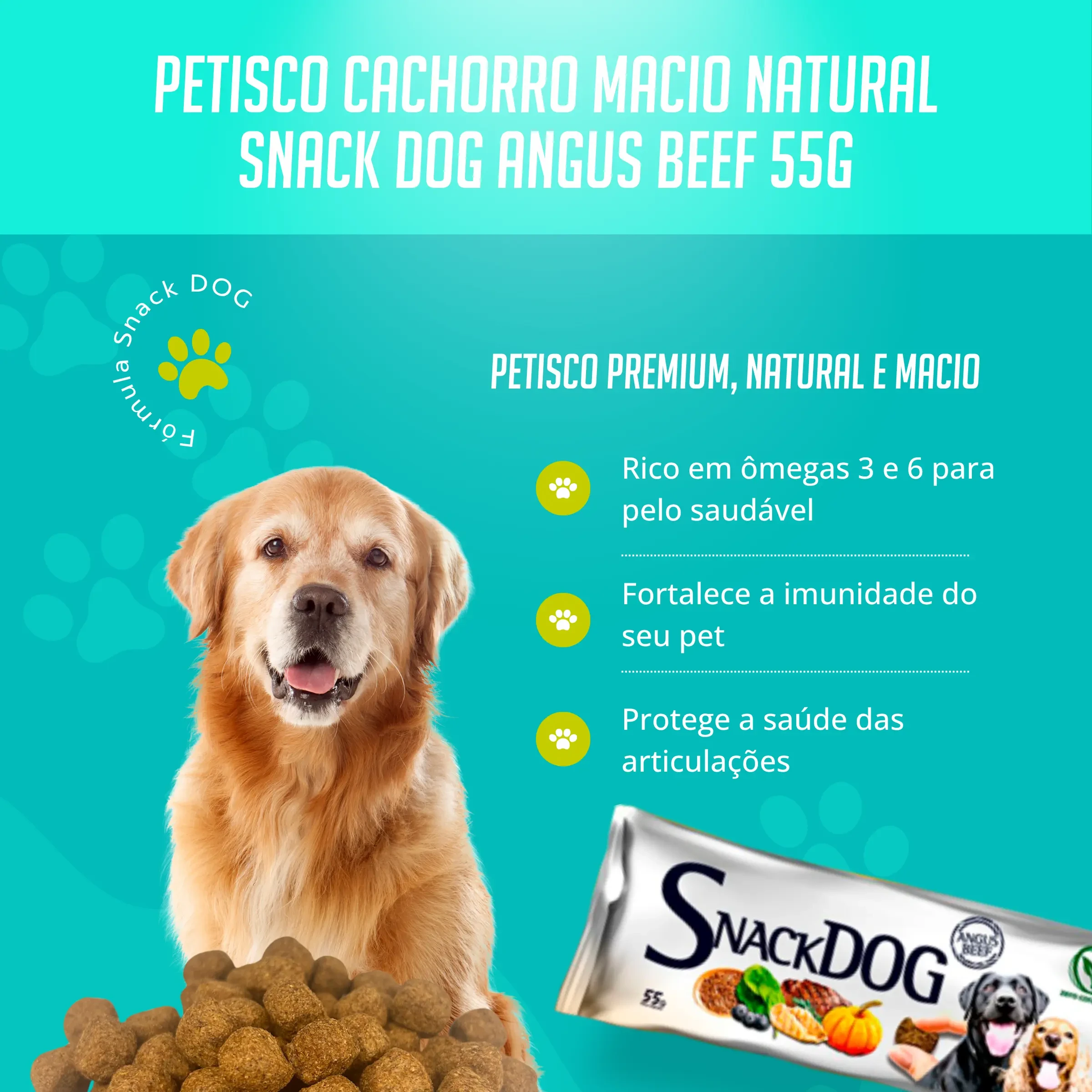 O SnackDog é um produto saudável e funcional, formulado para oferecer muito mais do que sabor ao seu cão. Enriquecido com ômegas 3 e 6, ele proporciona benefícios essenciais para a saúde e o bem-estar do seu pet. Esses ácidos graxos ajudam a fortalecer o sistema imunológico, promovem a saúde da pele e deixam o pelo mais brilhante e macio. Além disso, contribuem para a saúde das articulações, ajudando na mobilidade e no conforto do seu cão em todas as fases da vida. O SnackDog é a escolha perfeita para quem busca um snack nutritivo, completo e repleto de benefícios para o seu amigo de quatro patas.