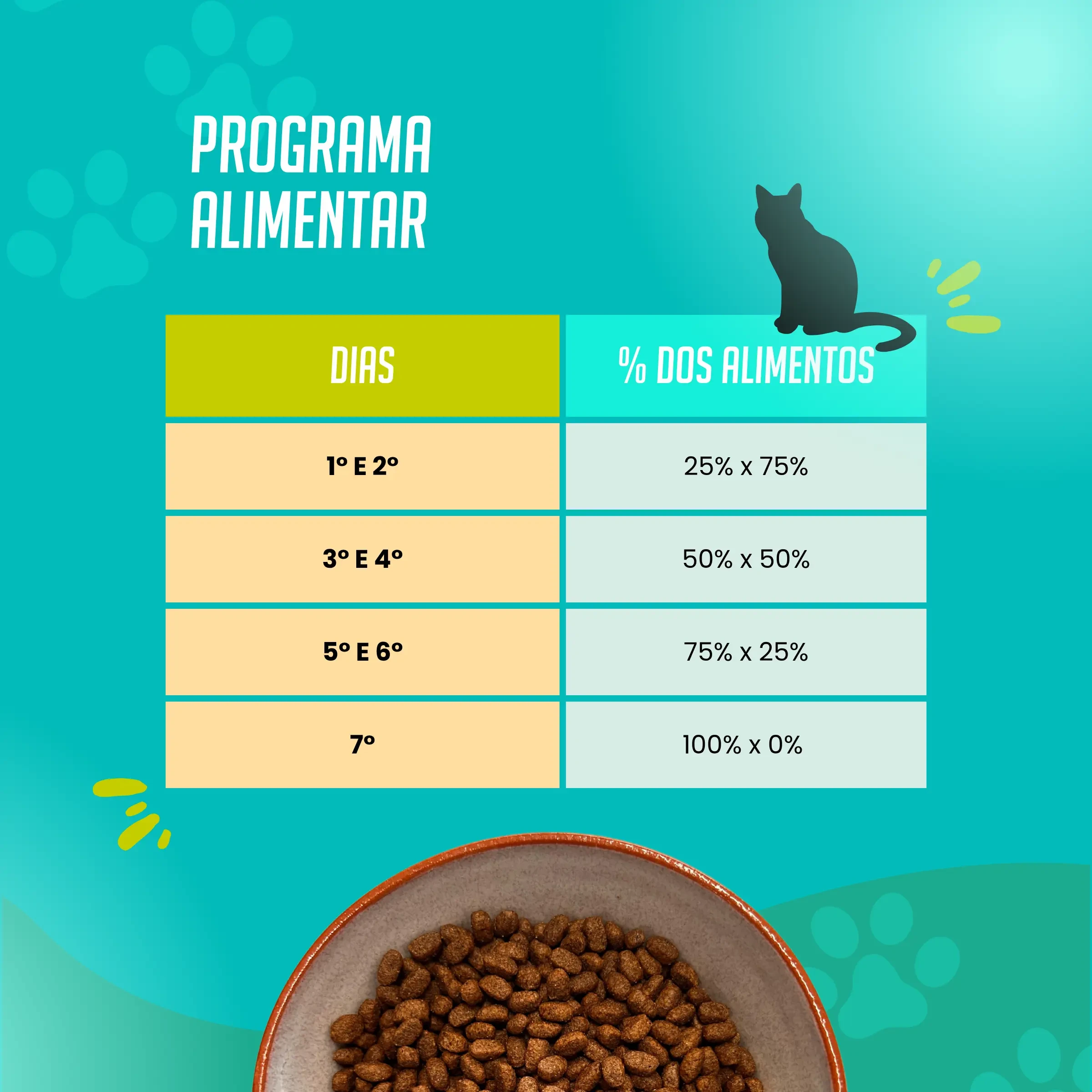 | DIAS | % DOS ALIMENTOS |